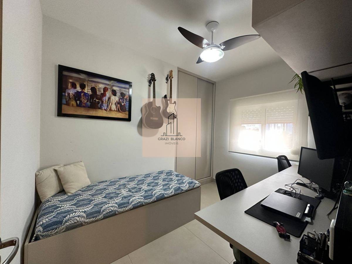 A suíte tem ar condicionado e guarda roupa fixo com porta em marcenaria e vidro reflecta bronze.