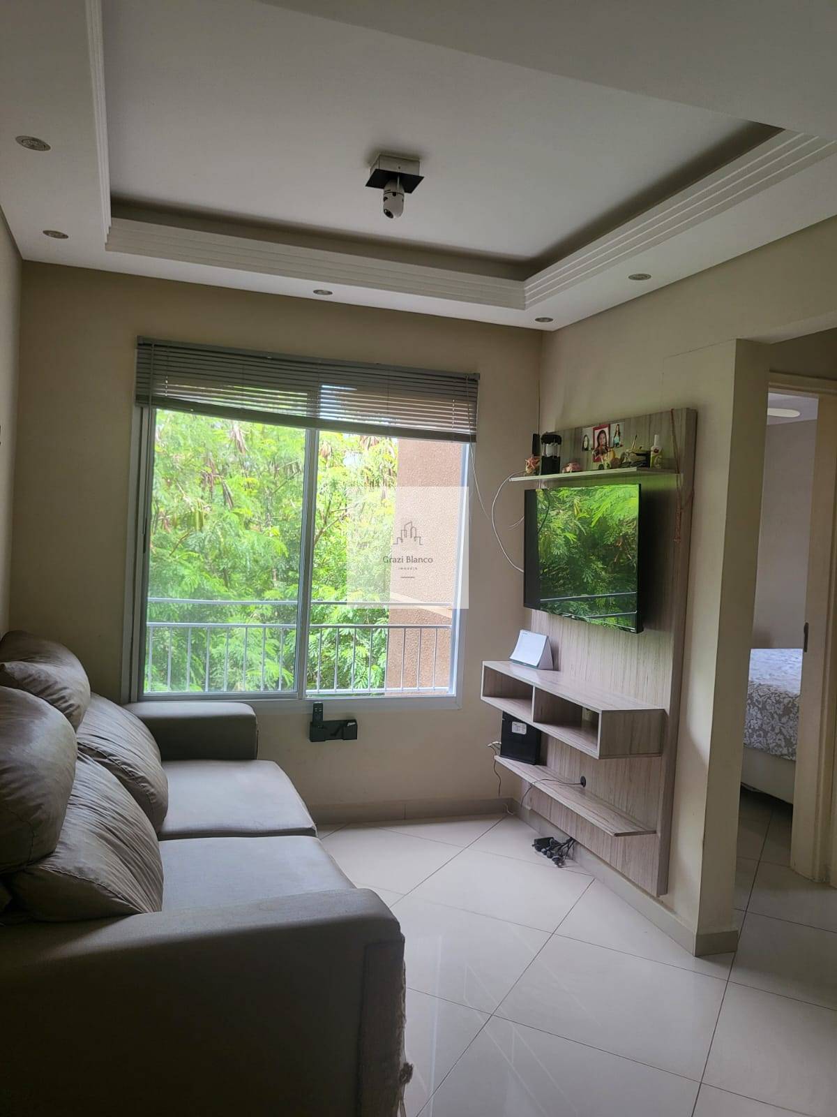Sala e dormitórios com piso porcelanato.