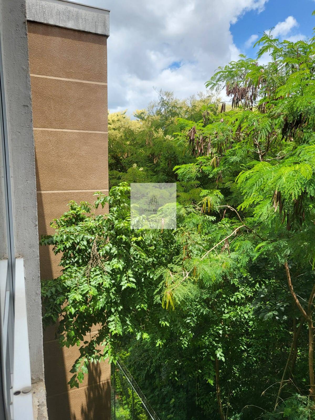 Vista da área arborizada sem prédio na frente. (Em nenhuma das janelas)