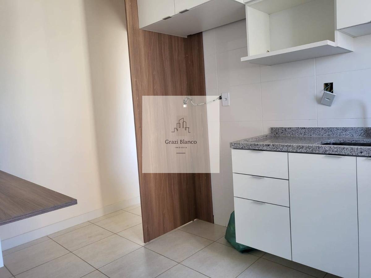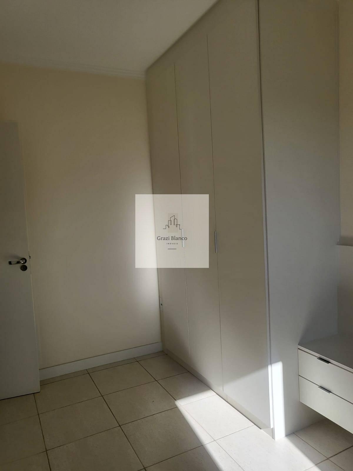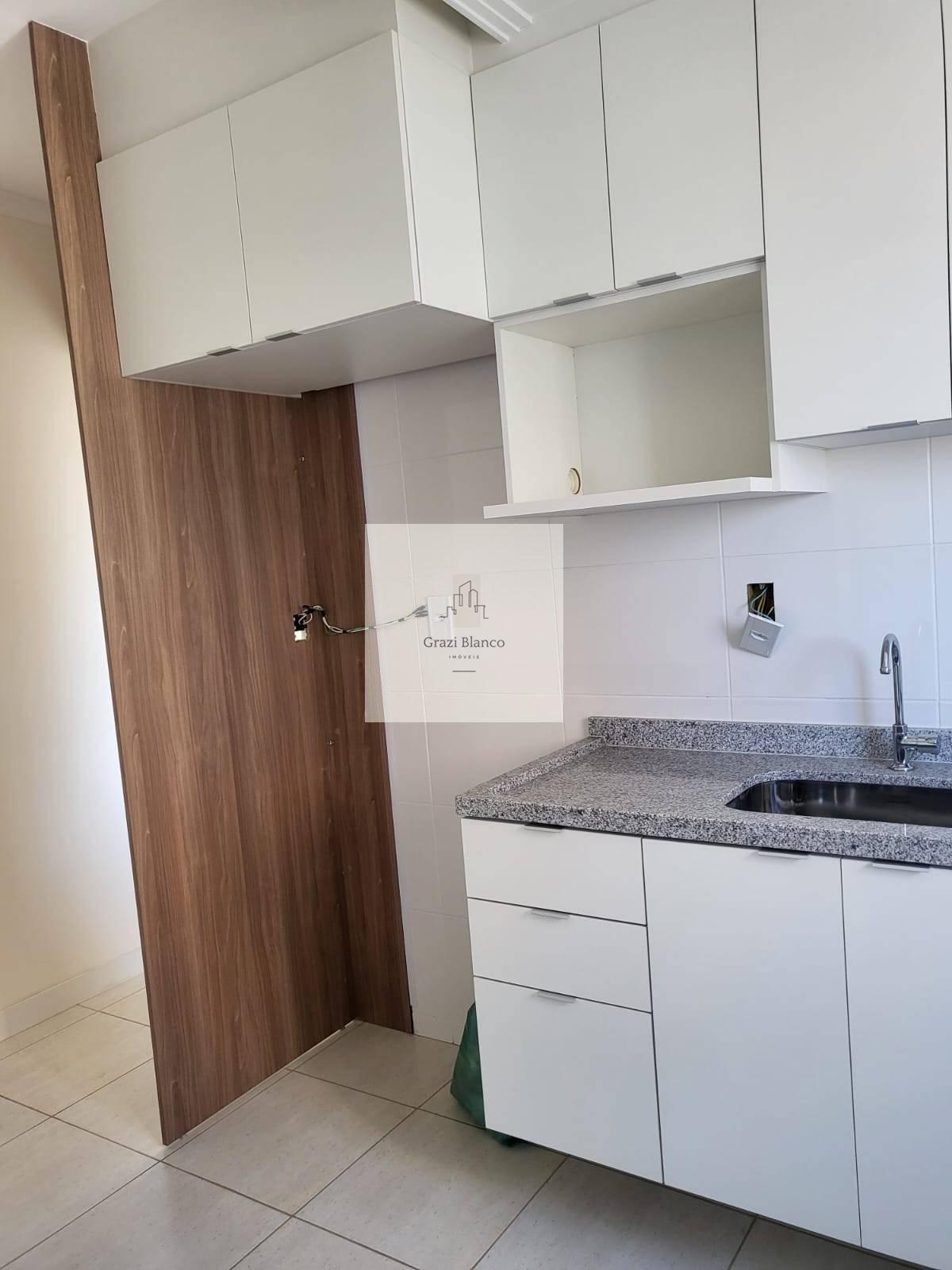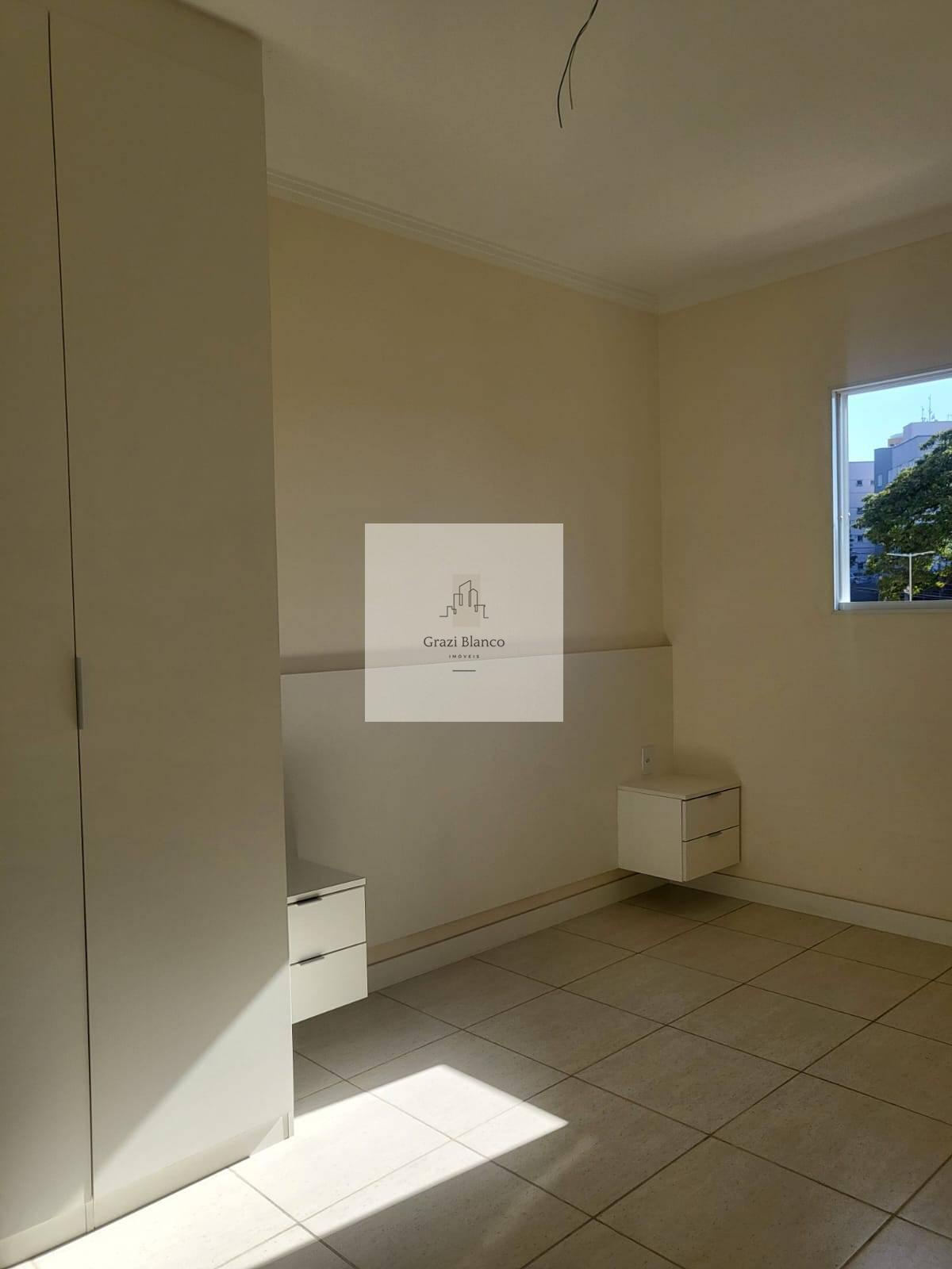 O apartamento tem armários na cozinha, lavanderia e dormitórios, painel de tv na sala e em um dormitório.