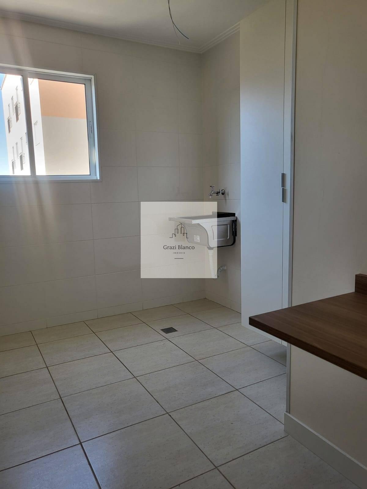 Apartamento com 40m² de área útil, com dois dormitórios, wc social, cozinha integrda com a lavanderia, uma vaga de garagem, varanda com vista para cidade.