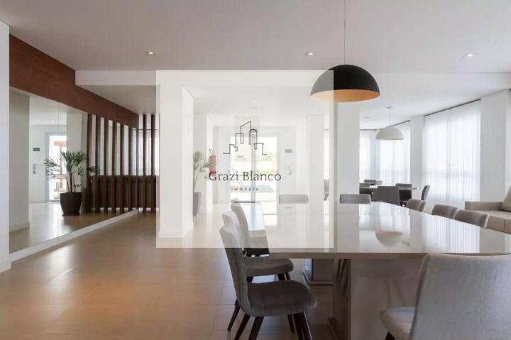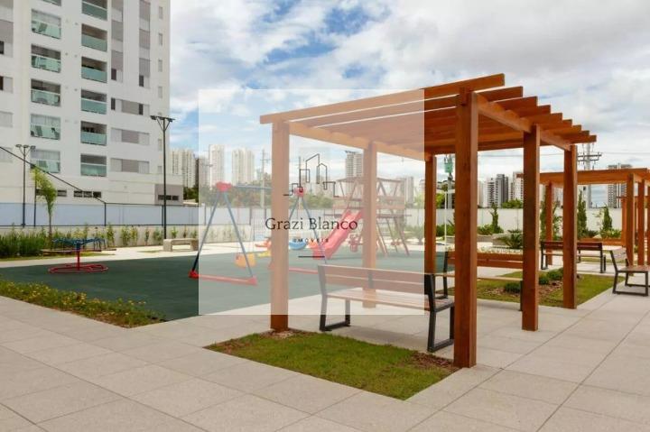 Apartamento com 93 m² de área útil, sendo uma sala com dois ambientes, varanda gourmet com churrasqueira e vista livre, cozinha com armários e fogão embutido, área de serviço com sacada técnica, 03 suítes sendo um deles com closet, 01 lavabo, 01 banheiro social com box de vidro e garagem com 2 vagas cobertas.