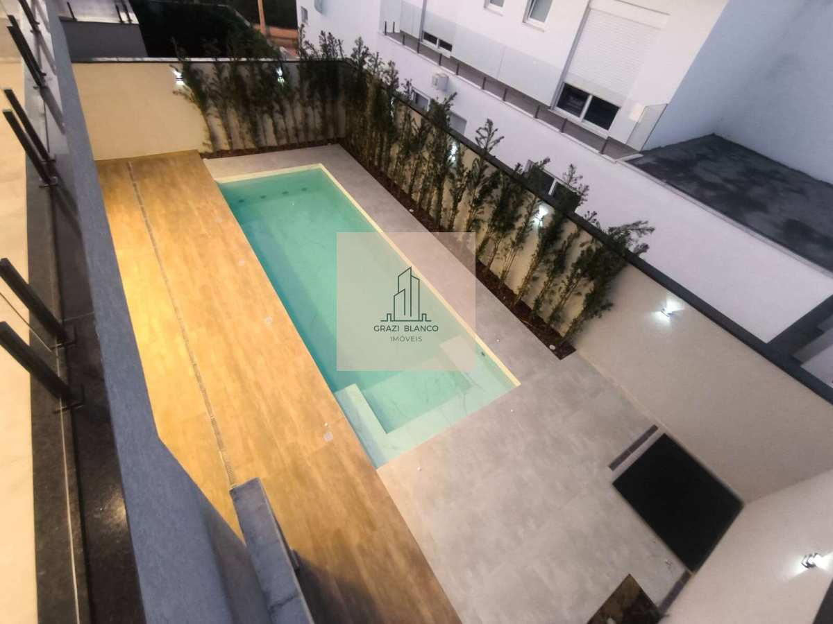 Cozinha e gourmet com ilha em granito preto Via Láctea, churrasqueira gourmet, piscina em porcelanato branco, quintal amplo nos fundos, piscina com LED, prainha e hidromassagem, banheiro da piscina, depósito, despensa e um escritório com banheiro (podendo ser reversível para suíte na parte inferior do imóvel). Paisagismo completo.