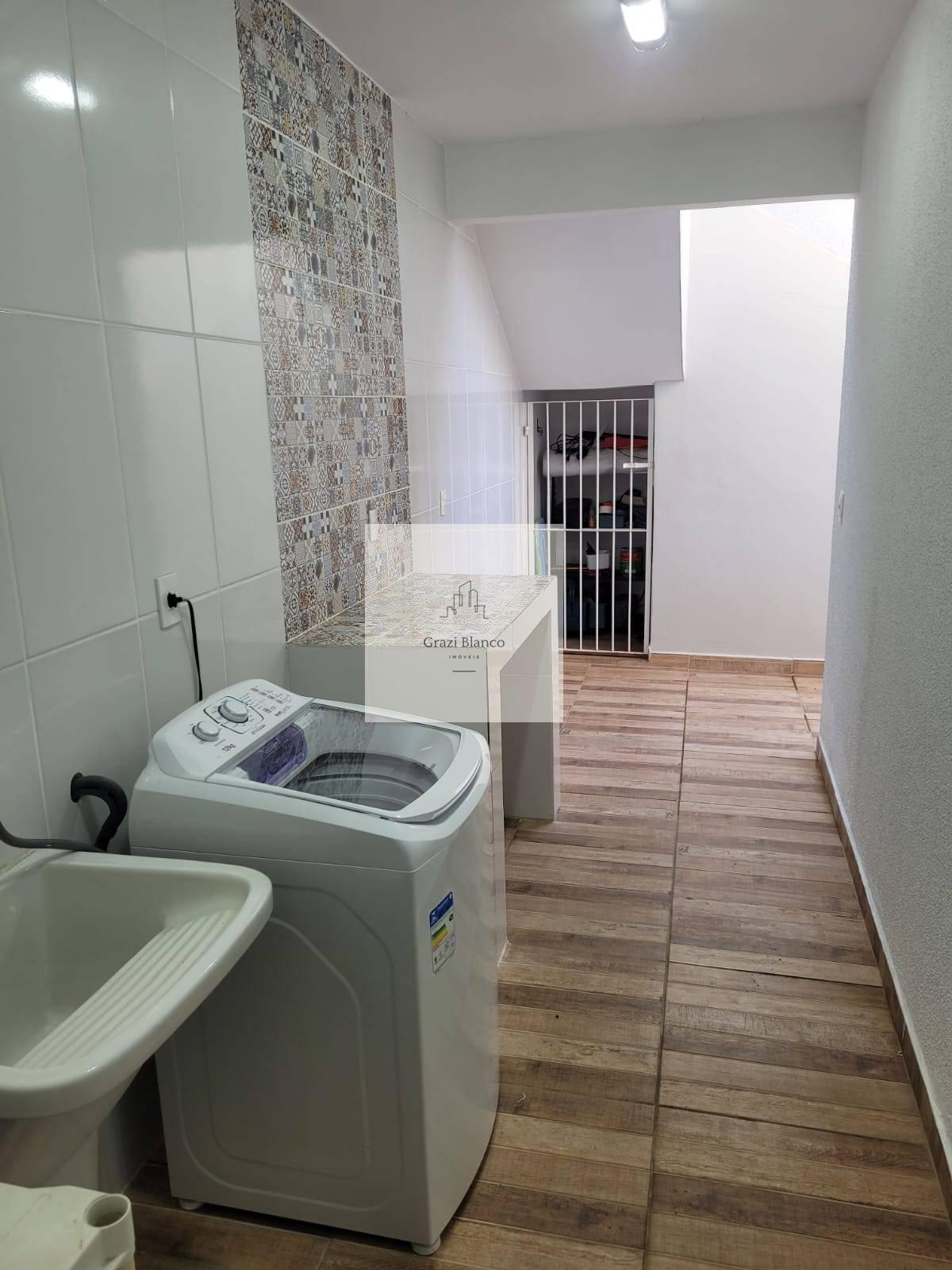 Lavanderia com piso e revestimento cerâmico.