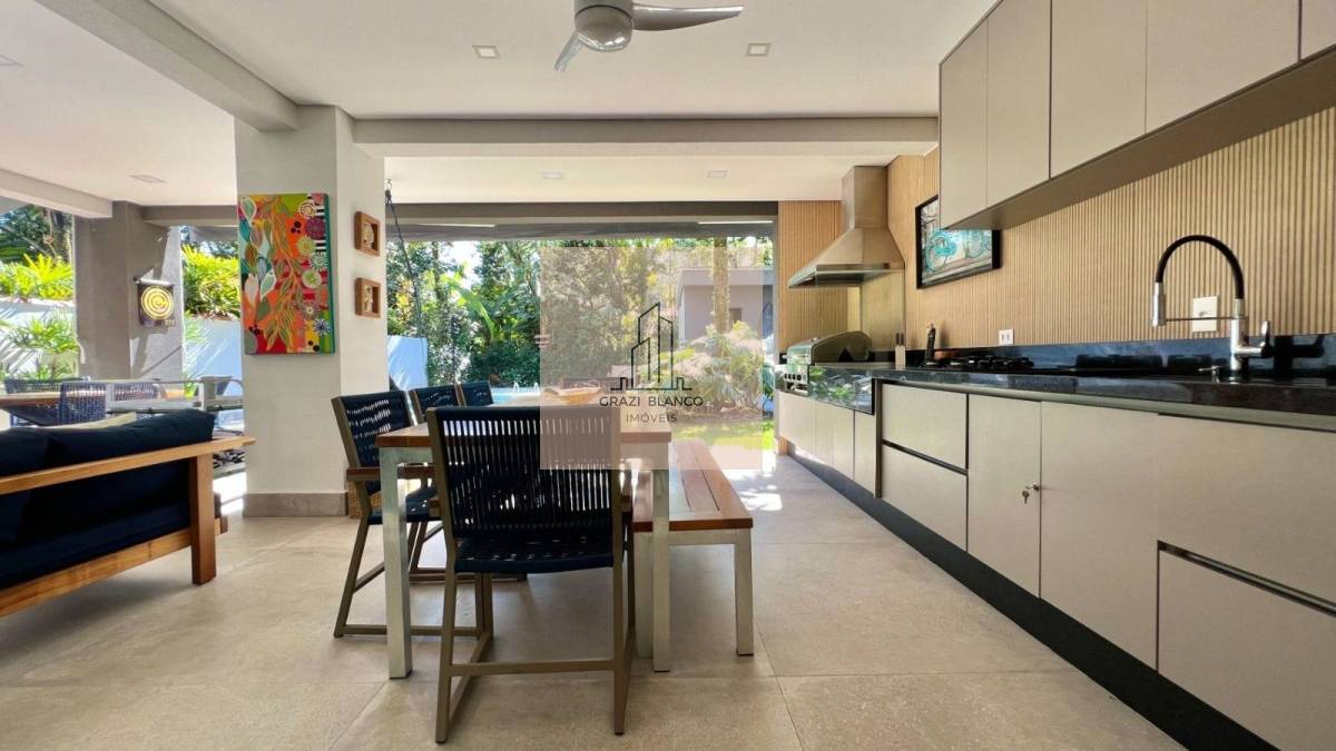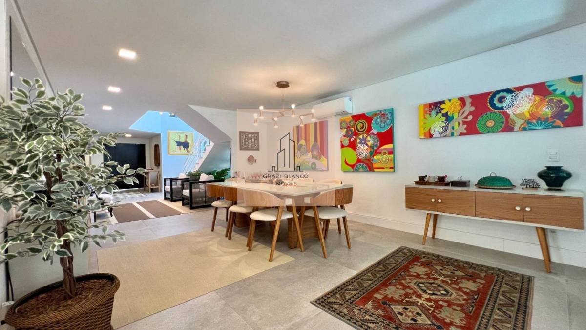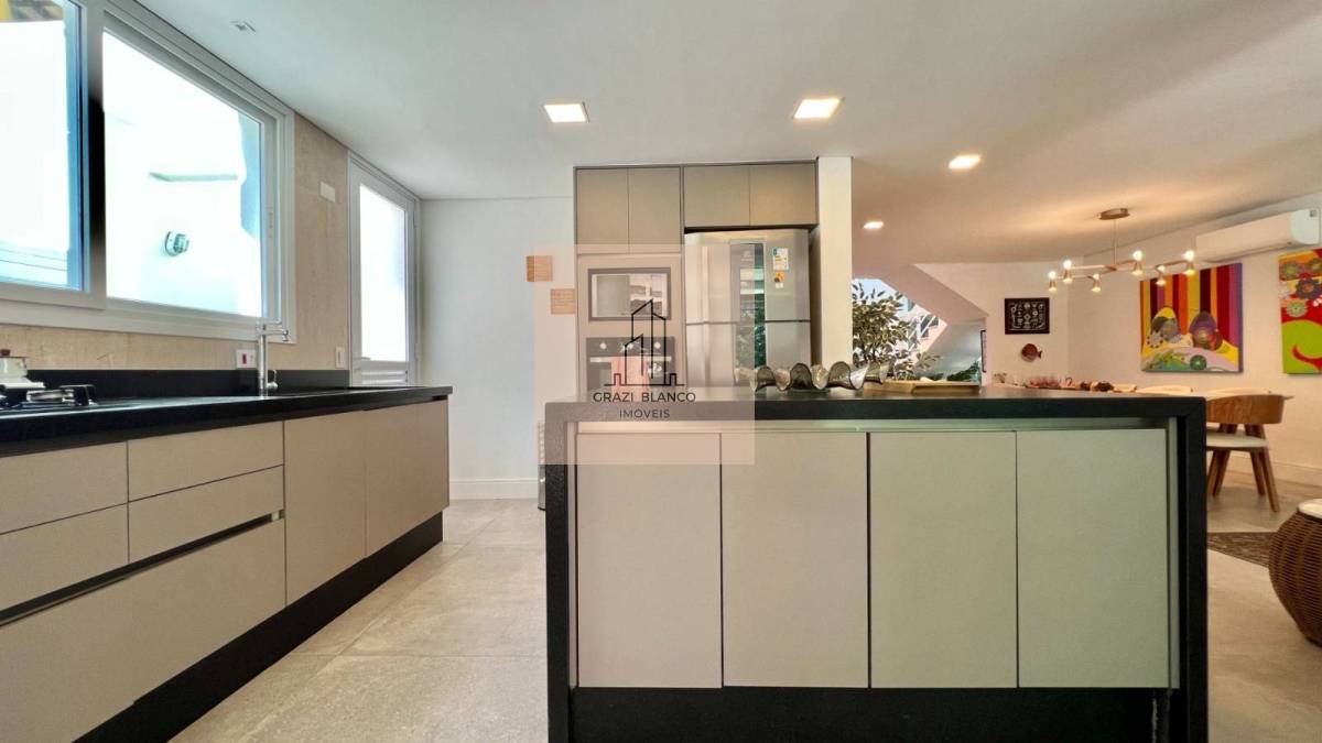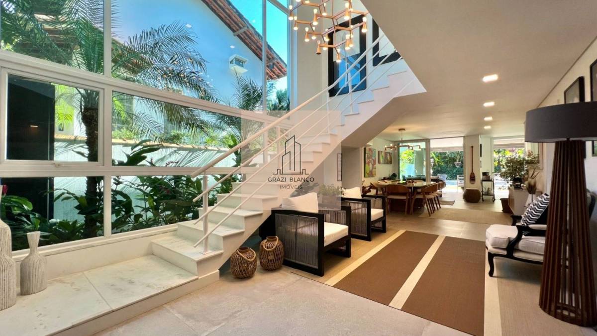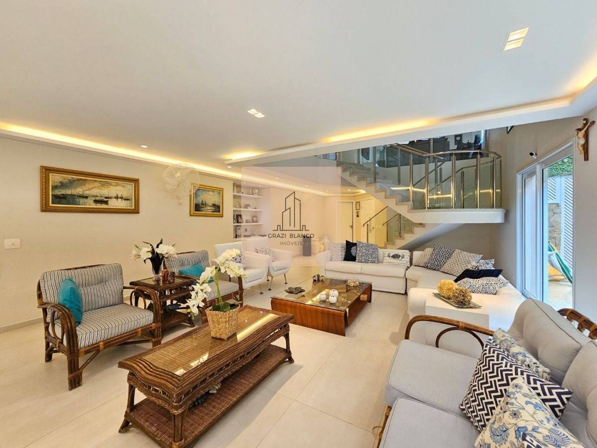 Finamente mobiliada e decorada, a moradia dividida em 2 pavimentos conta com 6 belíssimas suítes (1 delas no térreo), living para 3 ambientes, cozinha americana integrada, lavabo, área de serviço e 4 vagas de garagem.