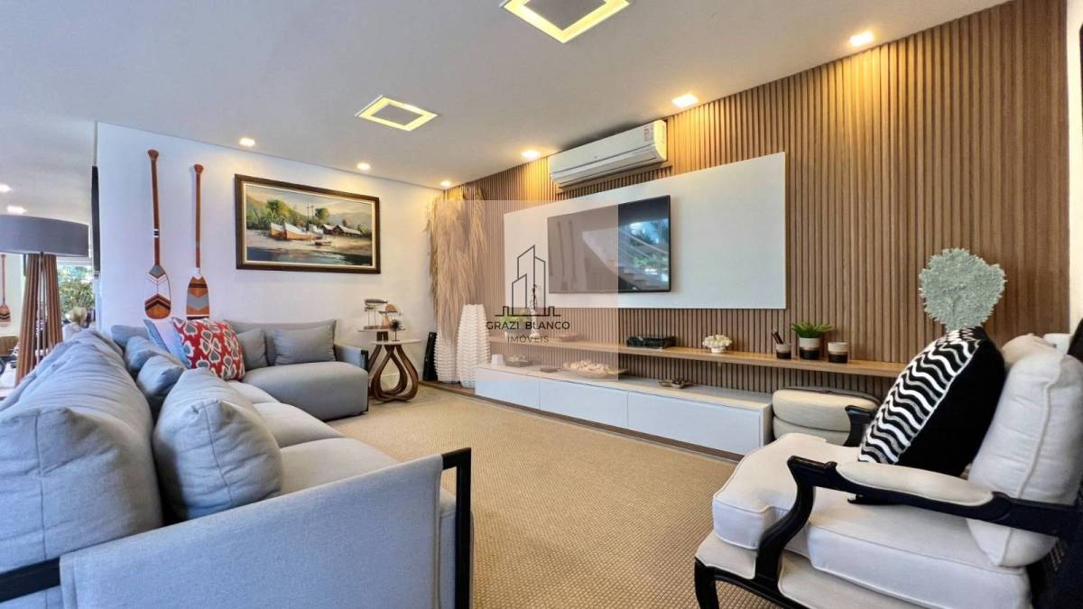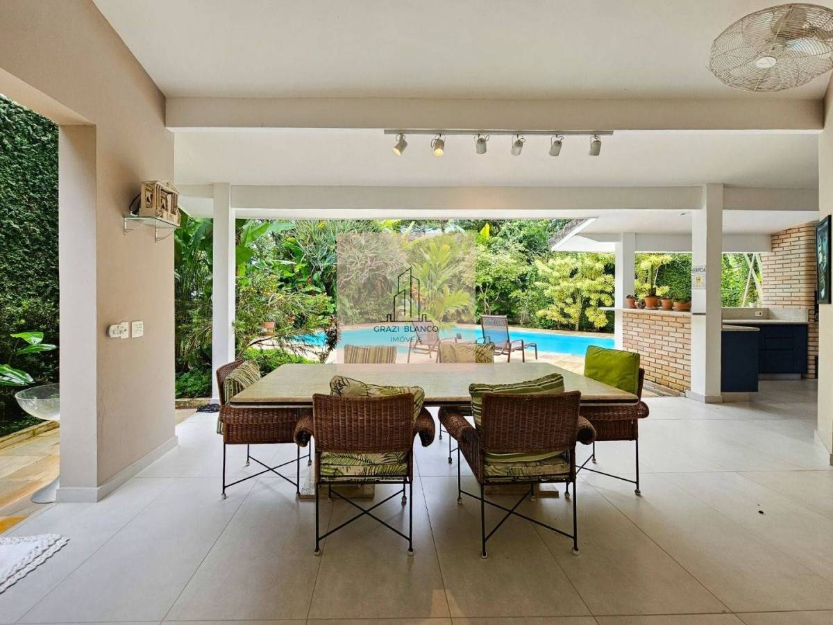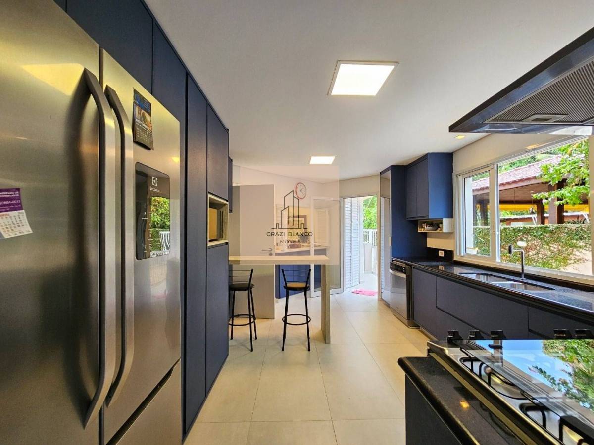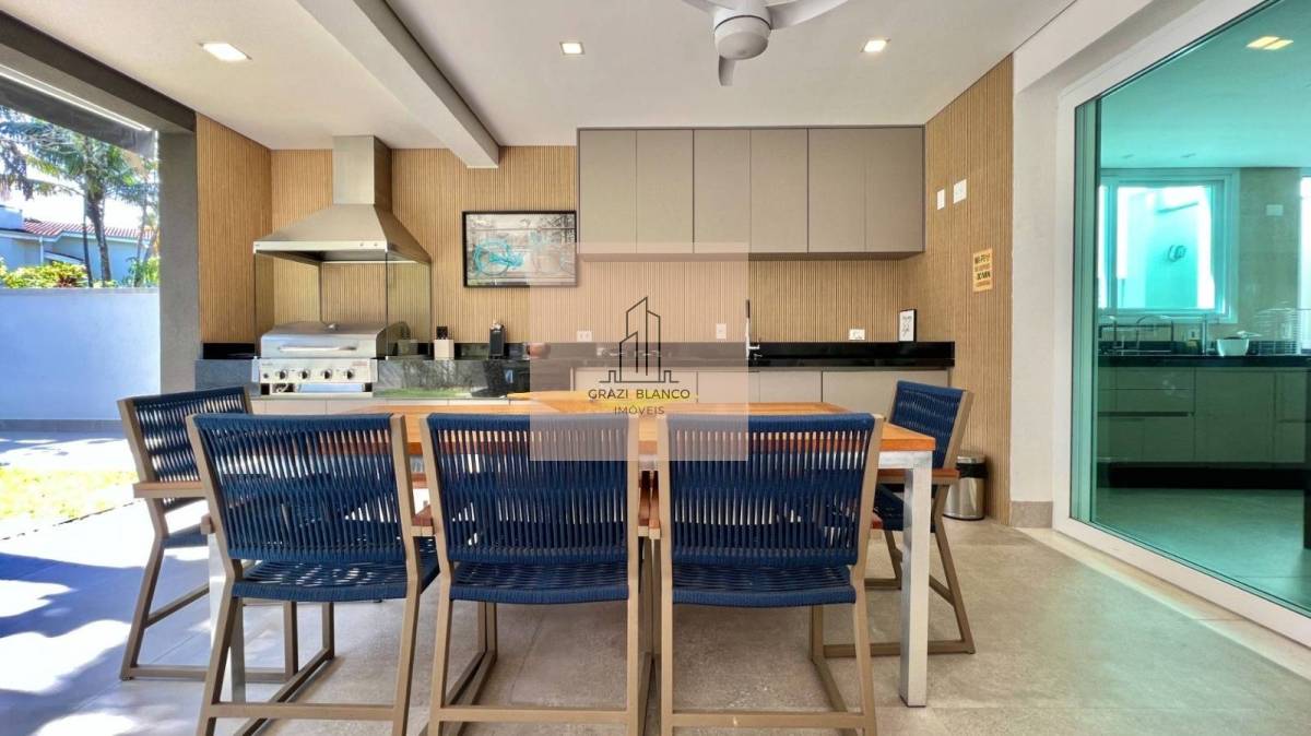 Finamente mobiliada e decorada, a moradia dividida em 2 pavimentos conta com 6 belíssimas suítes (1 delas no térreo), living para 3 ambientes, cozinha americana integrada, lavabo, área de serviço e 4 vagas de garagem.