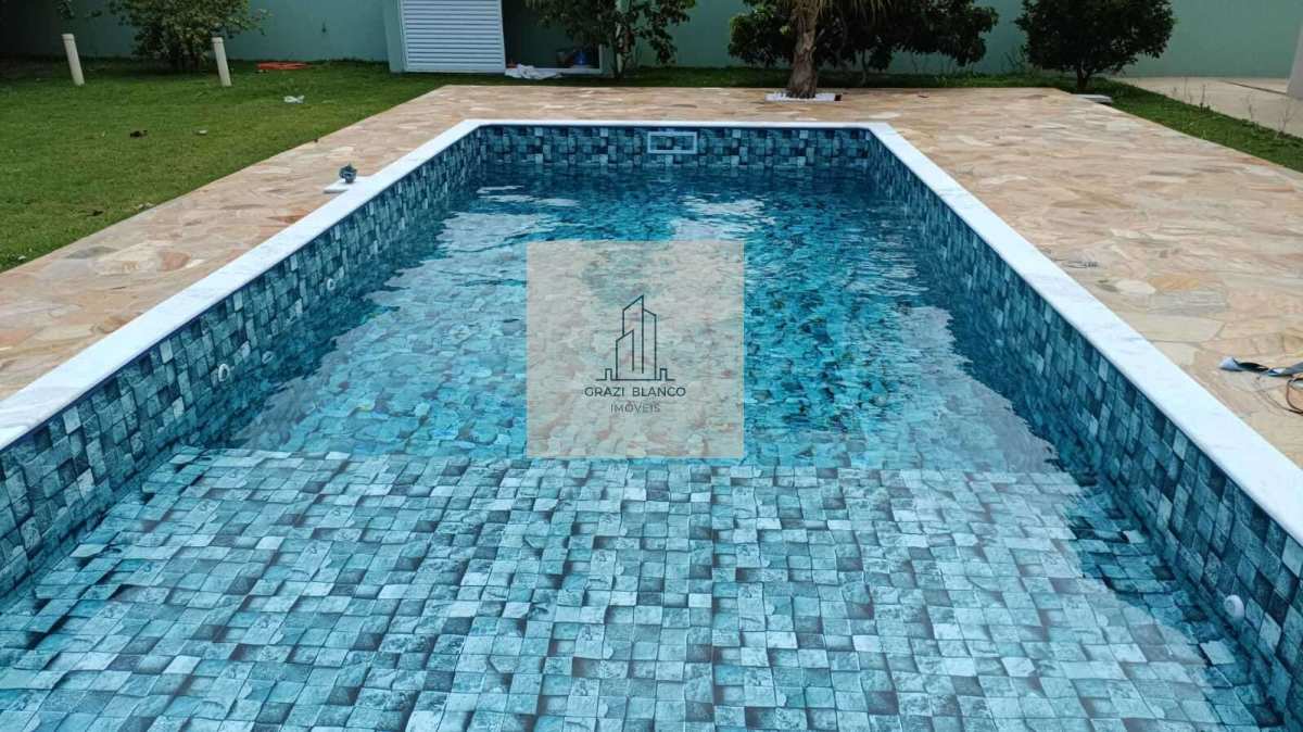 Estrutura de LazerPiscina (vinil, 3,5x7,5m - 26,25m²) com 3 bombas independentes (filtro, cascata e hidromassagem), pré-disposição para comandos remotos (Alexa) e infraestrutura para aquecimento solar.