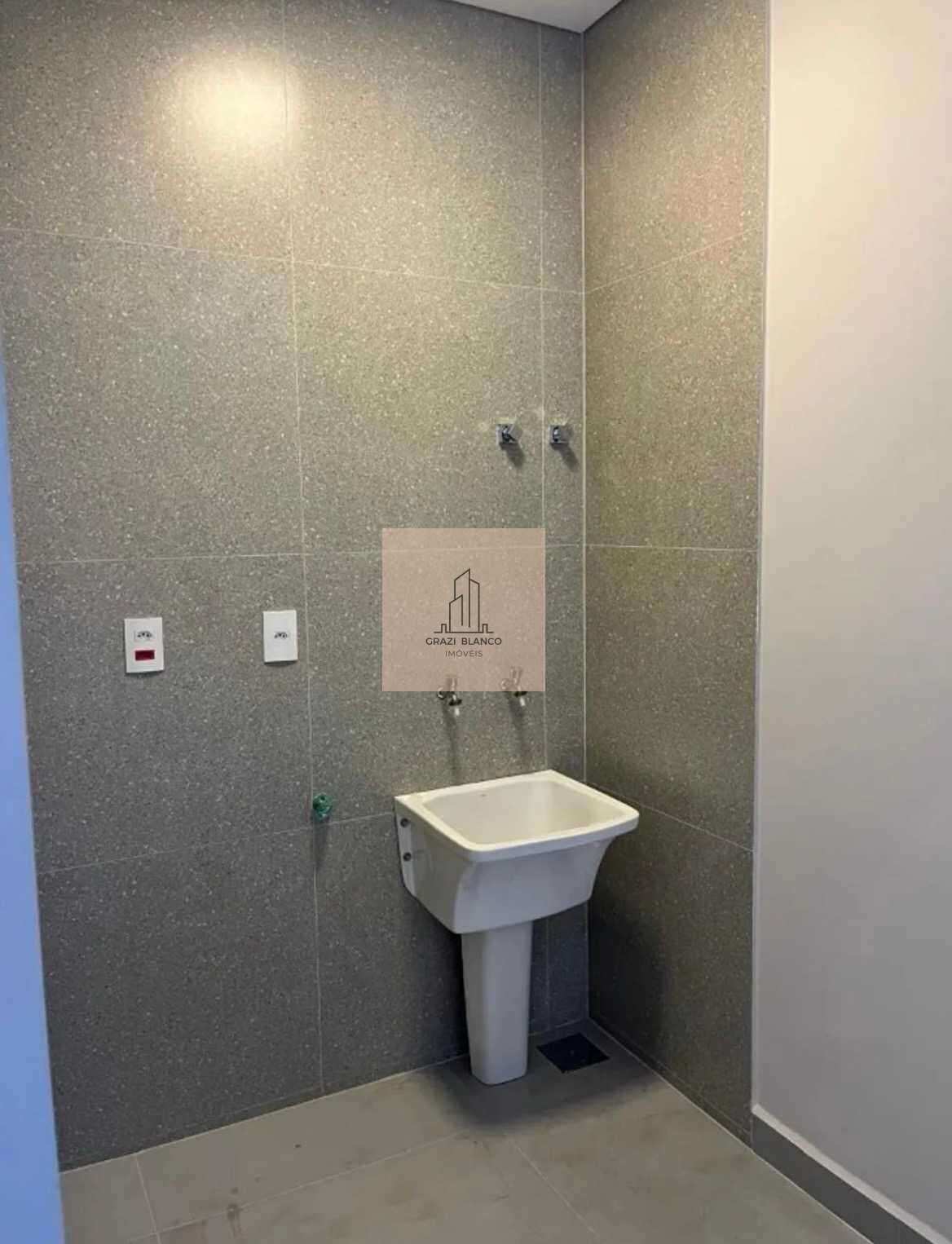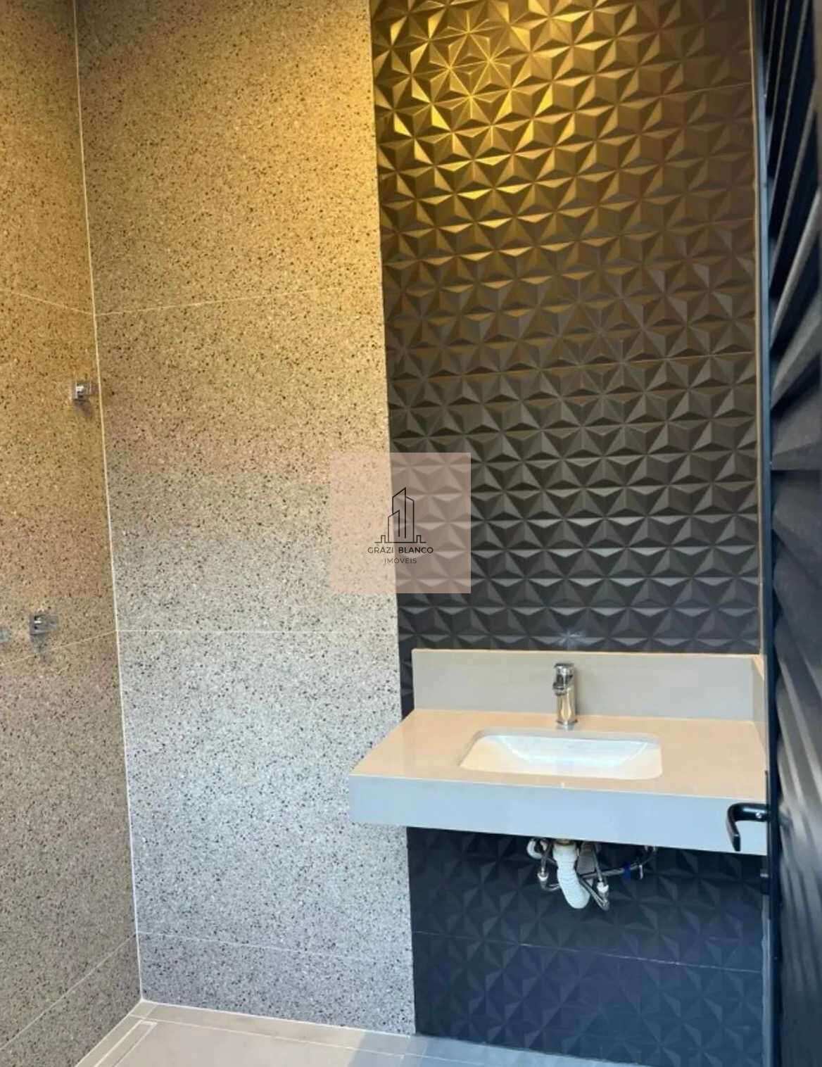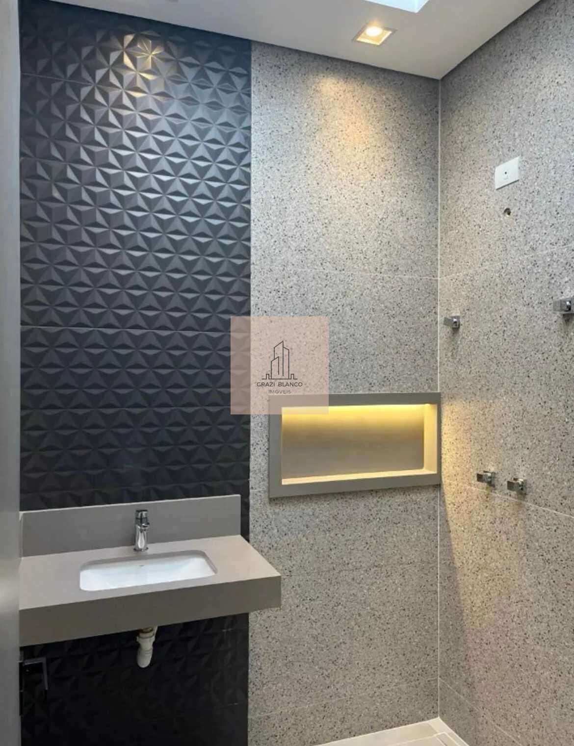 Banheiros (Social e Gourmet): Acabamento refinado em Quartzo Cinza.