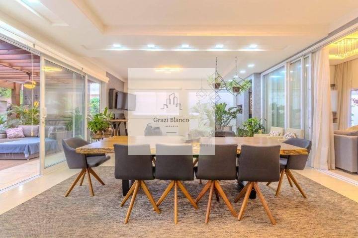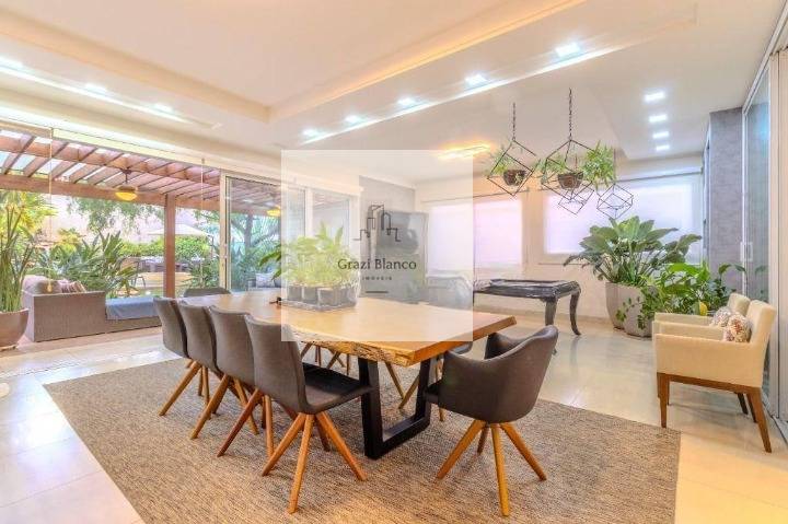 São 3 suítes amplas, a master com closet amplo, sala de estar, sala de jantar, cozinha totalmente mobiliada, área gourmet, piscina com um estilo bem natural, que vai te encantar, 4 vagas de garagem.