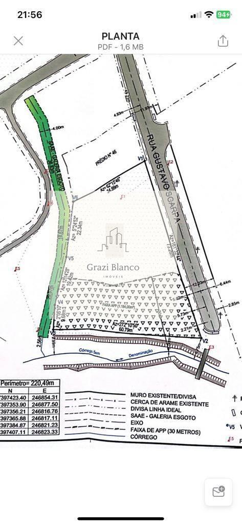 Terreno com 2.815 m² e uma área construída em torno de 400 m², com aclive, com algumas construções como casa sede, varanda gourmet, dependência de empregados, amplo jardim, 3 vagas de garagem cobertas.